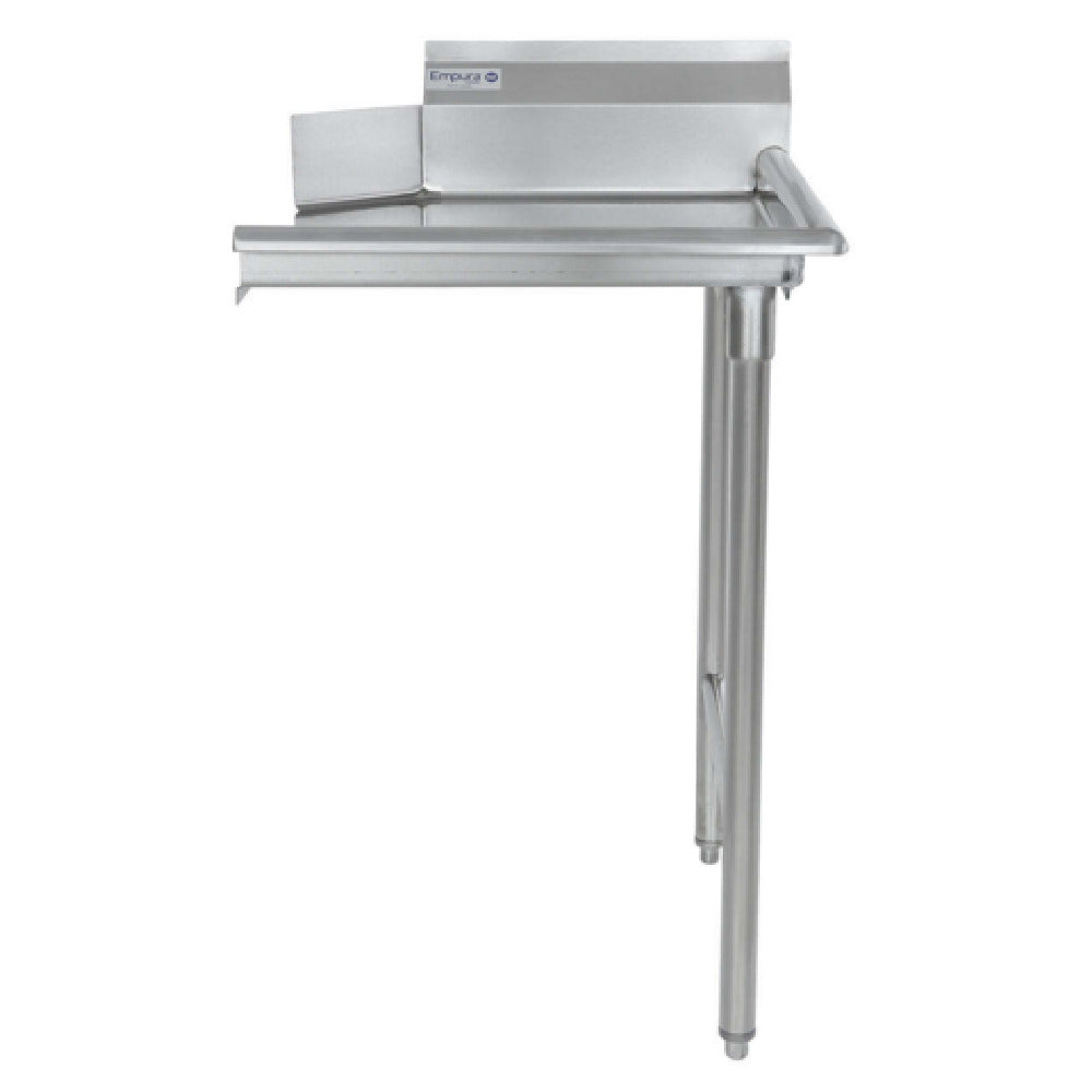 Empura, ECDT24R, Clean Dishtable, 24"W x 30"D x 41.5"H, straight design, 16 gauge 304 stainless steel worktop, 7.5" backsplash, all stainless steel structure (gussets/legs/cross braces/adjustable bullet feet), legs on right side, NSF, Empura Stainless