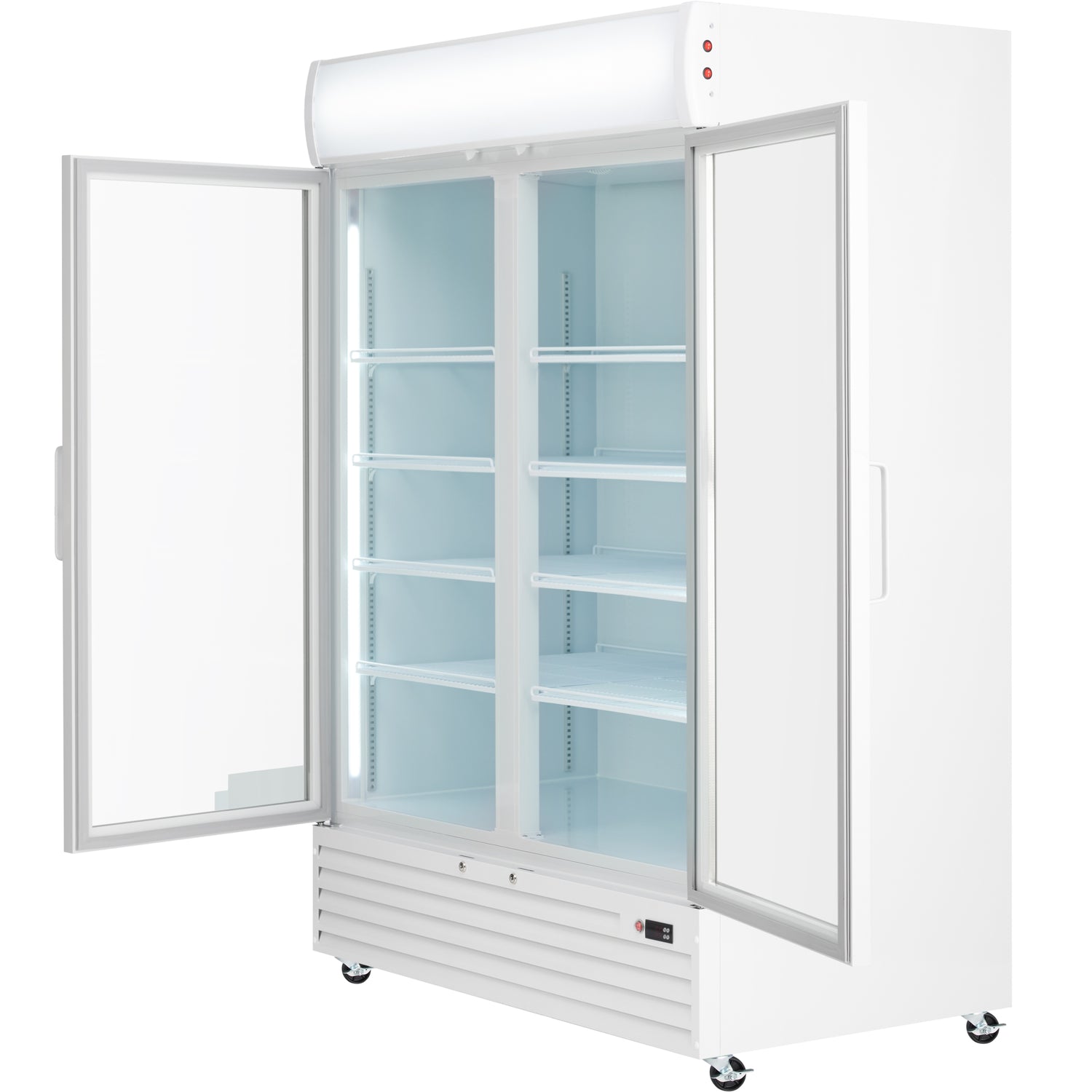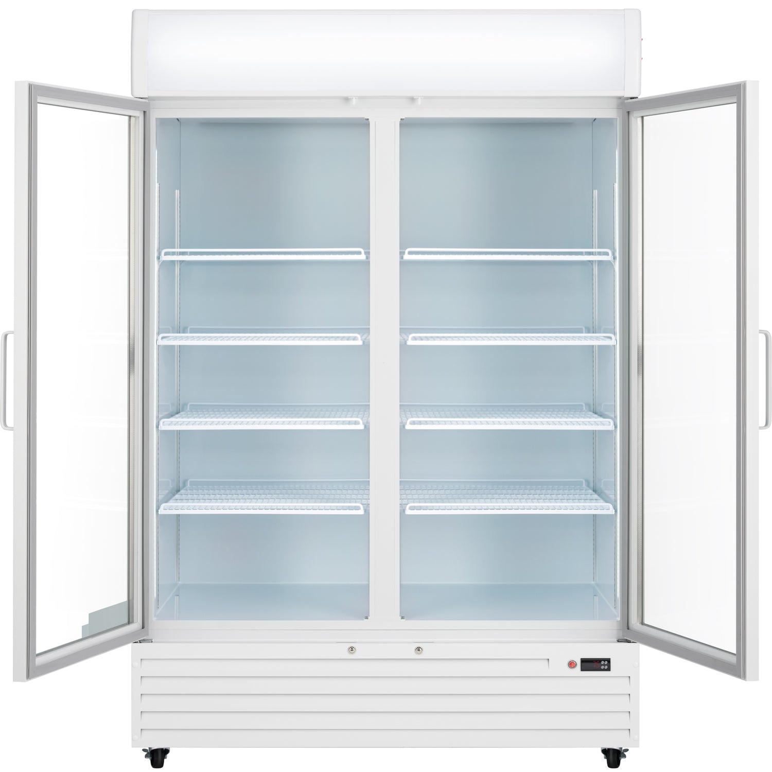 Empura, EGM-50W, Refrigerated Merchandiser, 52.36"W x 32.28"D x 79.65"H, 48 cu. ft. capacity, (2) glass swing doors, (8) shelves, baked enamel steel white exterior and interior, 32-50 F temperature range, 1/7 HP back compressor, R290 CFC-free refrigerant, electronic thermostat, digital LED temperature display, foamed-in-place high-density CFC-free polyurethane insulation, 1,276 BTU/h, US plug type, 3.3 amps, 110v/60Hz/1ph, ETL, ETL Sanitation, cETLus, Tested and conforms to NSF-7 Standards, Empura Refrigeration