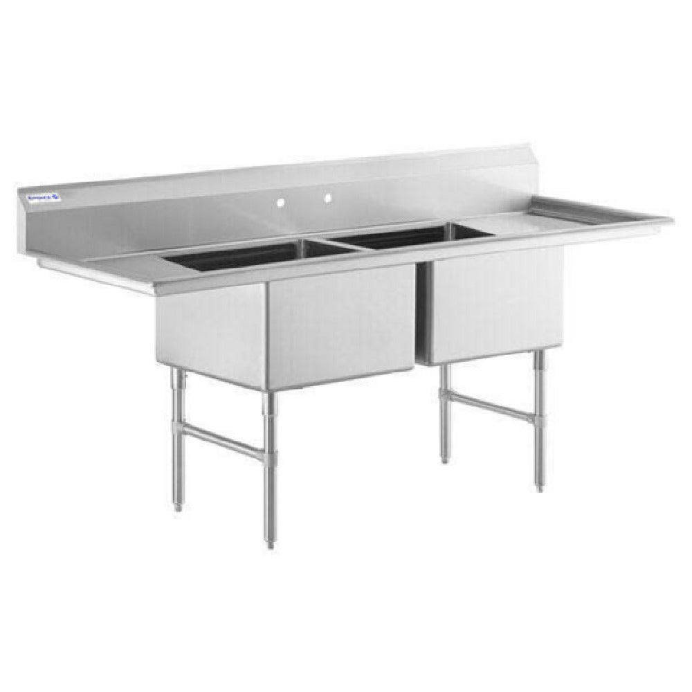 Empura, EHD22424LR18, Sink, 86"W x 29.5"D x 44.25"H, (2) compartment, heavy duty, 16 gauge 304 stainless steel, all stainless steel structure (gussets/legs/cross braces/adjustable bullet feet), (2) 18" drainboards, (2) bowls 24"L x 24"W x 14"D, 9.75" back splash, NSF, Empura Stainless