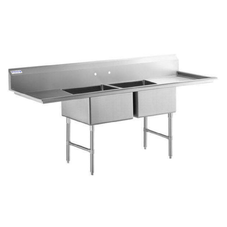 Empura, EHD22424LR24, Sink, 98"W x 29.5"D x 44.25"H, 29.5"D x 98"W x 44.25"H, heavy duty16 gauge 304 stainless steel, all stainless steel structure (gussets/legs/cross braces/adjustable bullet feet), (2) 24" drainboards, (2) bowls 24"L x 24"W x 14"D, 9.75" back splash, NSF, Empura Stainless