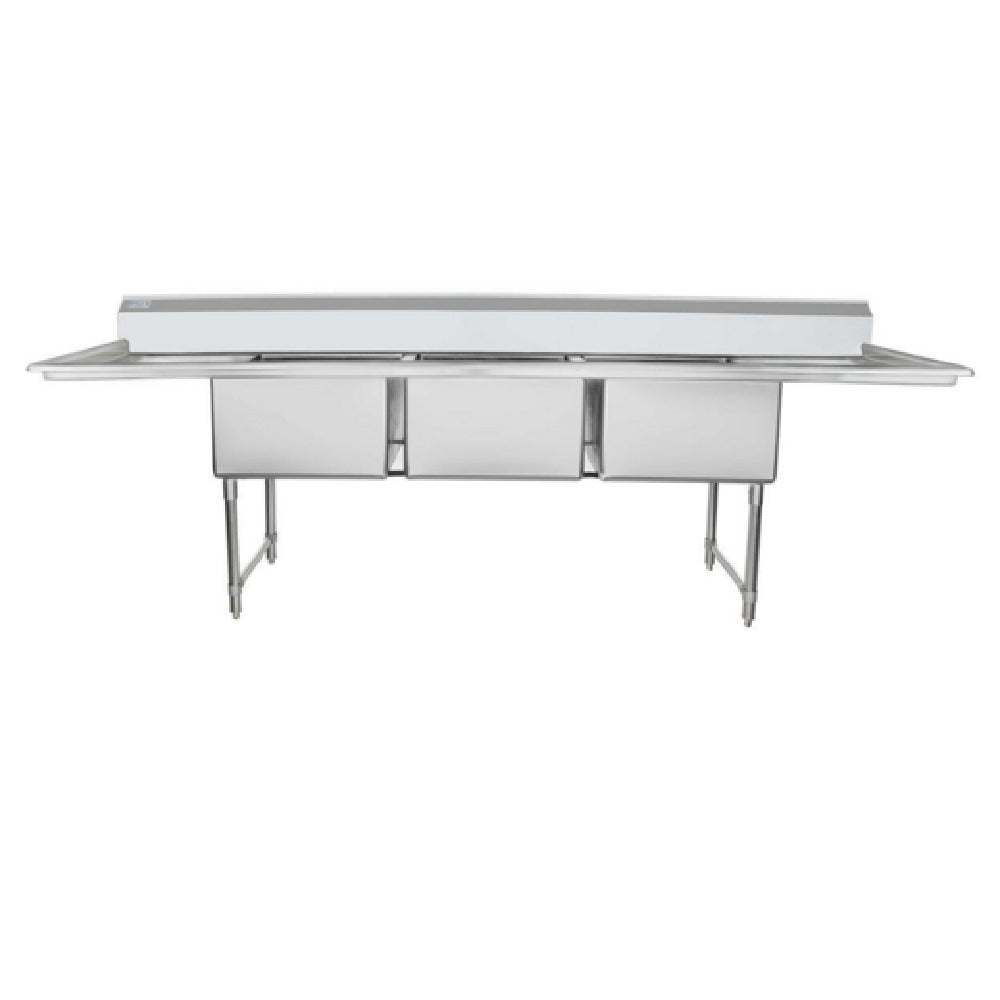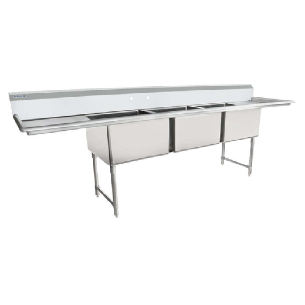 Empura, EHD32424LR24, Sink, 124"W x 29.5"D x 44.25"H, heavy duty, (3) compartment, 16 gauge 304 stainless steel, all stainless steel structure (gussets/legs/cross braces/adjustable bullet feet), (2) 24" drainboards, (3) bowls 24"L x 24"W x 14"D, 9.75" back splash, NSF, Empura Stainless