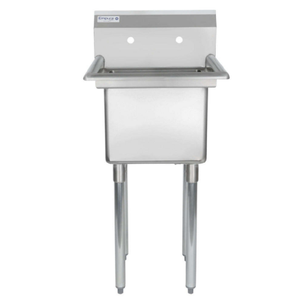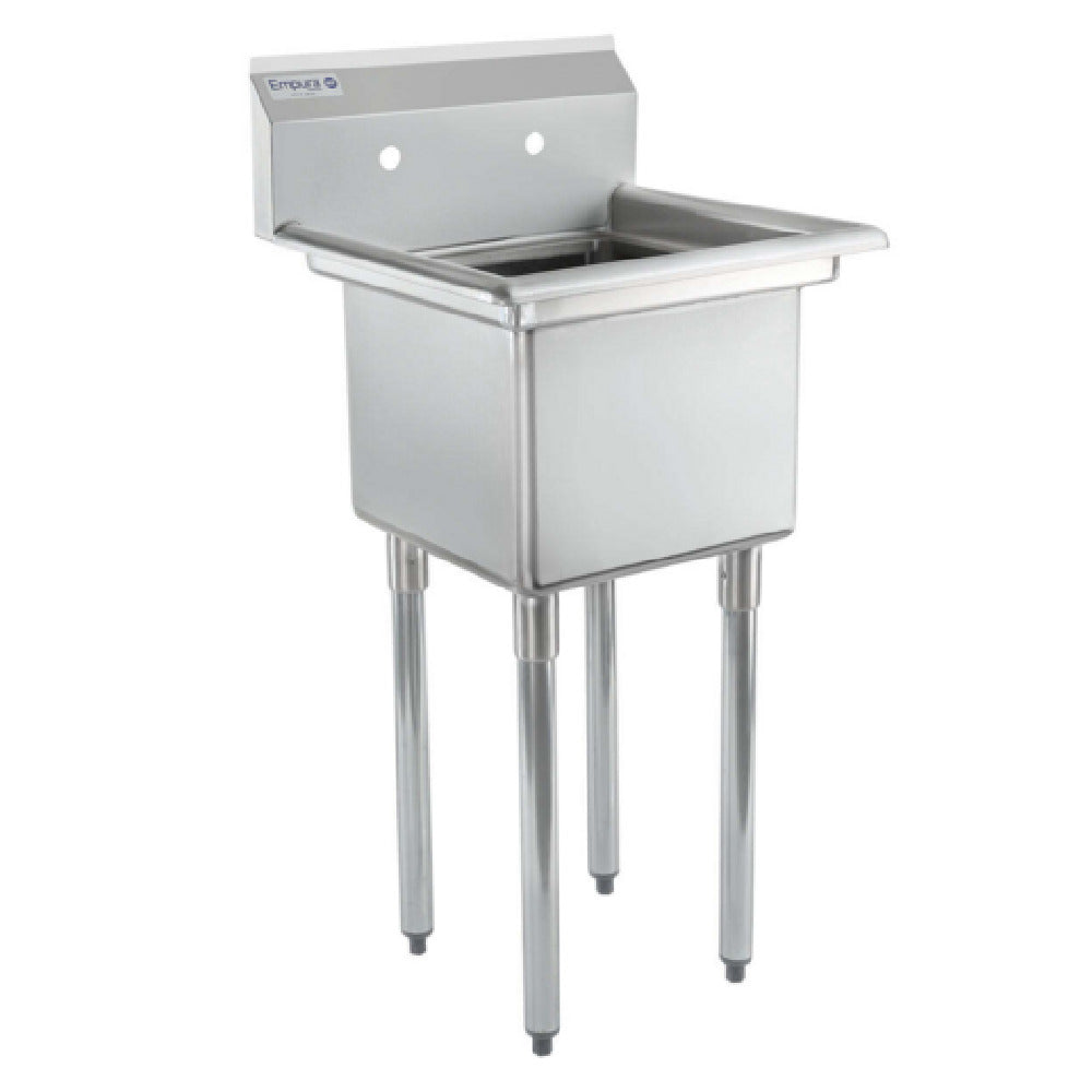 Empura, ESD11515, Sink, 23"W x 20.5"D x 44.25"H, (1) compartment, standard duty, 18 gauge 304 stainless steel, 4" galvanized legs, plastic adjustable feet, no drainboards, (1) bowl 15"L x 15"W x 12"D, 9.75" back splash, NSF, Empura Stainless