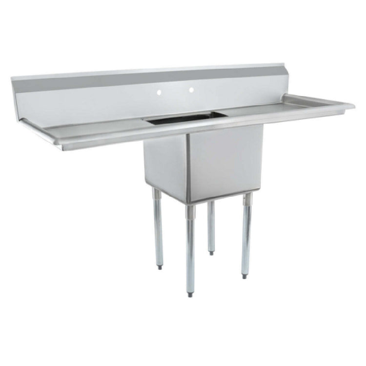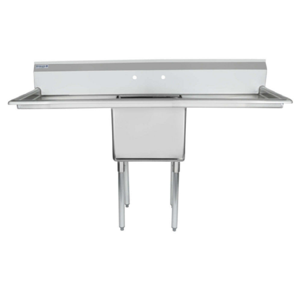 Empura, ESD11818LR24, Sink, 66"W x 23.5"D x 44.25"H, (1) compartment, standard duty, 18 gauge 304 stainless steel, 4" galvanized legs, plastic adjustable feet, (2) 24" drainboards, (1) bowl 18"L x 18"W x 14"D, 9.75" back splash, NSF, Empura Stainless