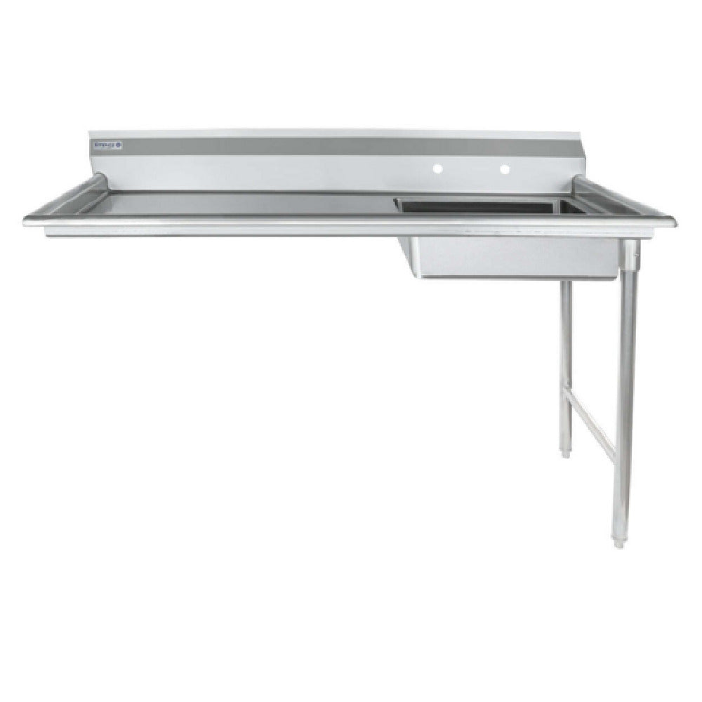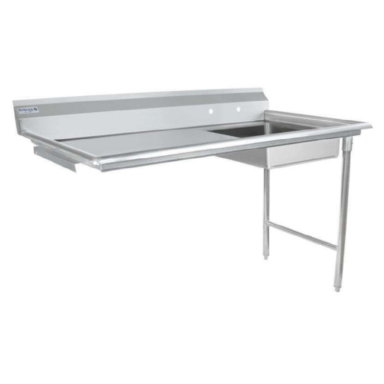 Empura, EUDT60R, Soiled Dishtable, 60"W x 30"D x 41.5"H, undercounter, 16 gauge 304 stainless steel worktop, 7.5" backsplash, pre-rinsebowl 20"D x 20"W x 5"H, 3.5" drain basket included, all stainless steel structure (gussets/legs/cross braces/adjustable bullet feet), legs on right side, NSF, Empura Stainless