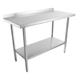 Empura, EWT2B2448, Work Table, 48"W x 24"D x 35"H, economy duty, 2 inch backsplash, plastic adjustable bullet feet, galvanized steel 1-5/8" diameter leg, galvanized steel hat channel, 18 gauge under shelf, galvanized steel under shelf, 18 gauge top shelf, 430 stainless steel top shelf, NSF, Empura Stainless