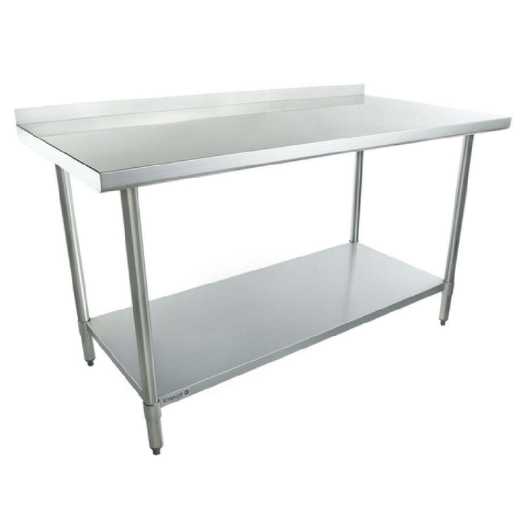 Empura, EWTB3060, Work Table, 60"W x 30"D x 35"H, economy duty, 2 inch backsplash, plastic adjustable bullet feet, galvanized steel 1-5/8" diameter leg, galvanized steel hat channel, 18 gauge under shelf, galvanized steel under shelf, 18 gauge top shelf, 430 stainless steel top shelf, NSF, Empura Stainless
