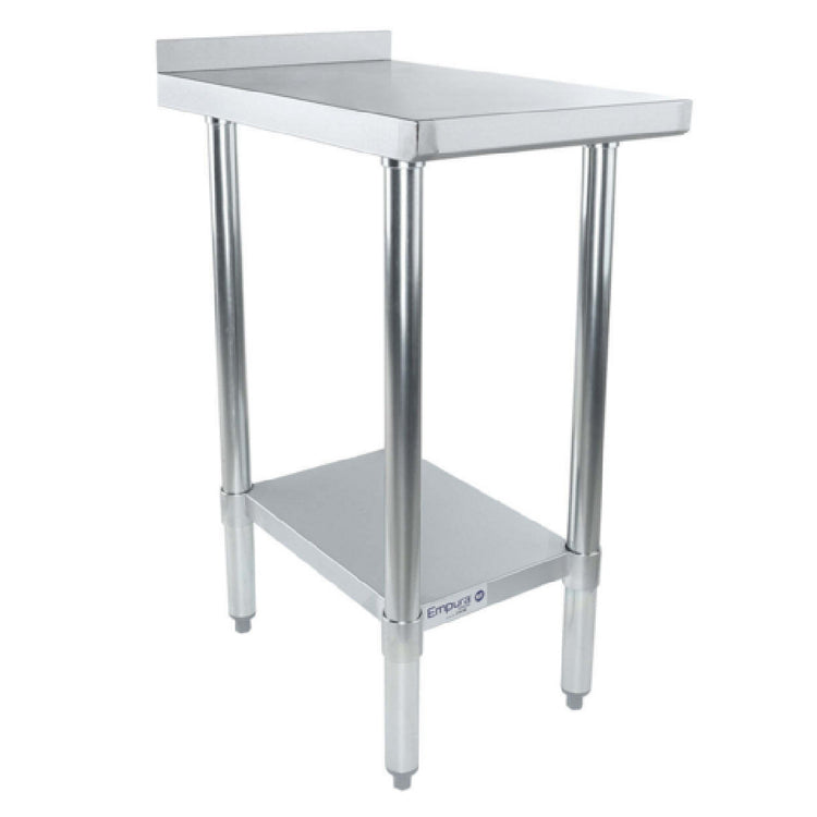 Empura, FT1524E, Filler Table, 15"W x 24"D x 34.75"H, 18 gauge 430 stainless steel, 1-1/2" backsplash, galvanized legs and undershelf, 400lb top shelf loading capacity, 280lb undershelf loading capacity, plastic adjustable bullet feet, NSF, Empura Stainless