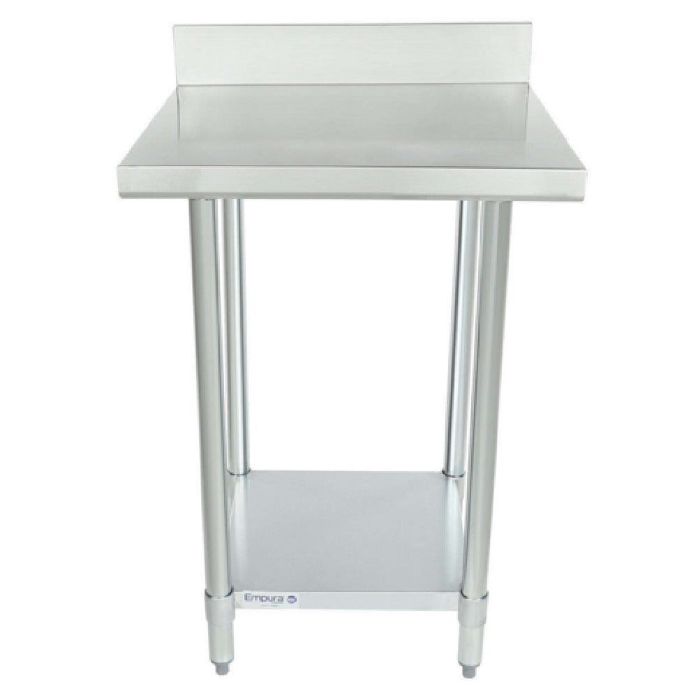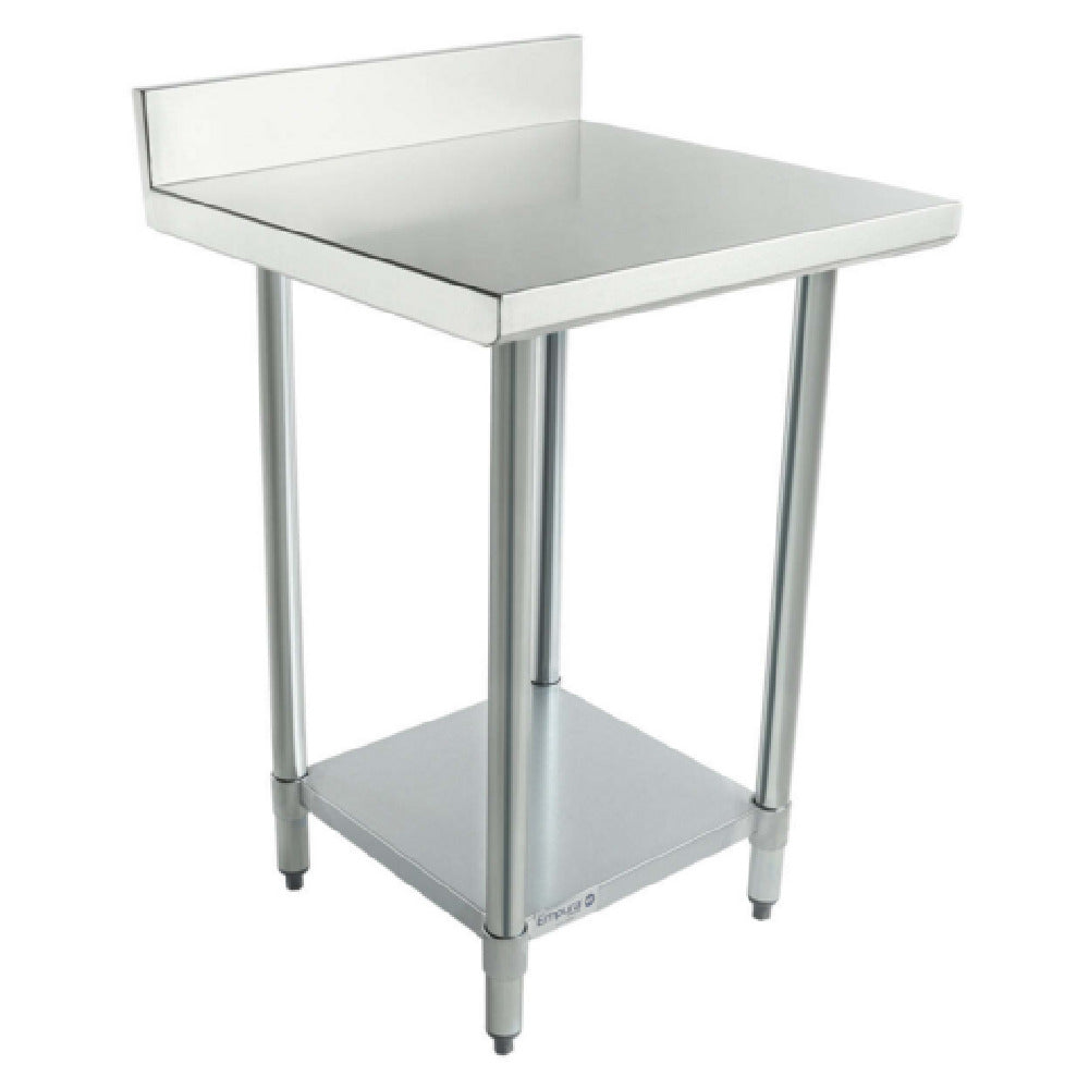Empura, WT4B2424, Work Table, 24"W x 24"D x 35"H, standard duty, 4 inch backsplash, plastic adjustable bullet feet, galvanized steel 1-5/8" diameter leg, galvanized steel hat channel, 18 gauge under shelf, galvanized steel under shelf, 18 gauge top shelf, 304 stainless steel, top shelf, NSF, Empura Stainless
