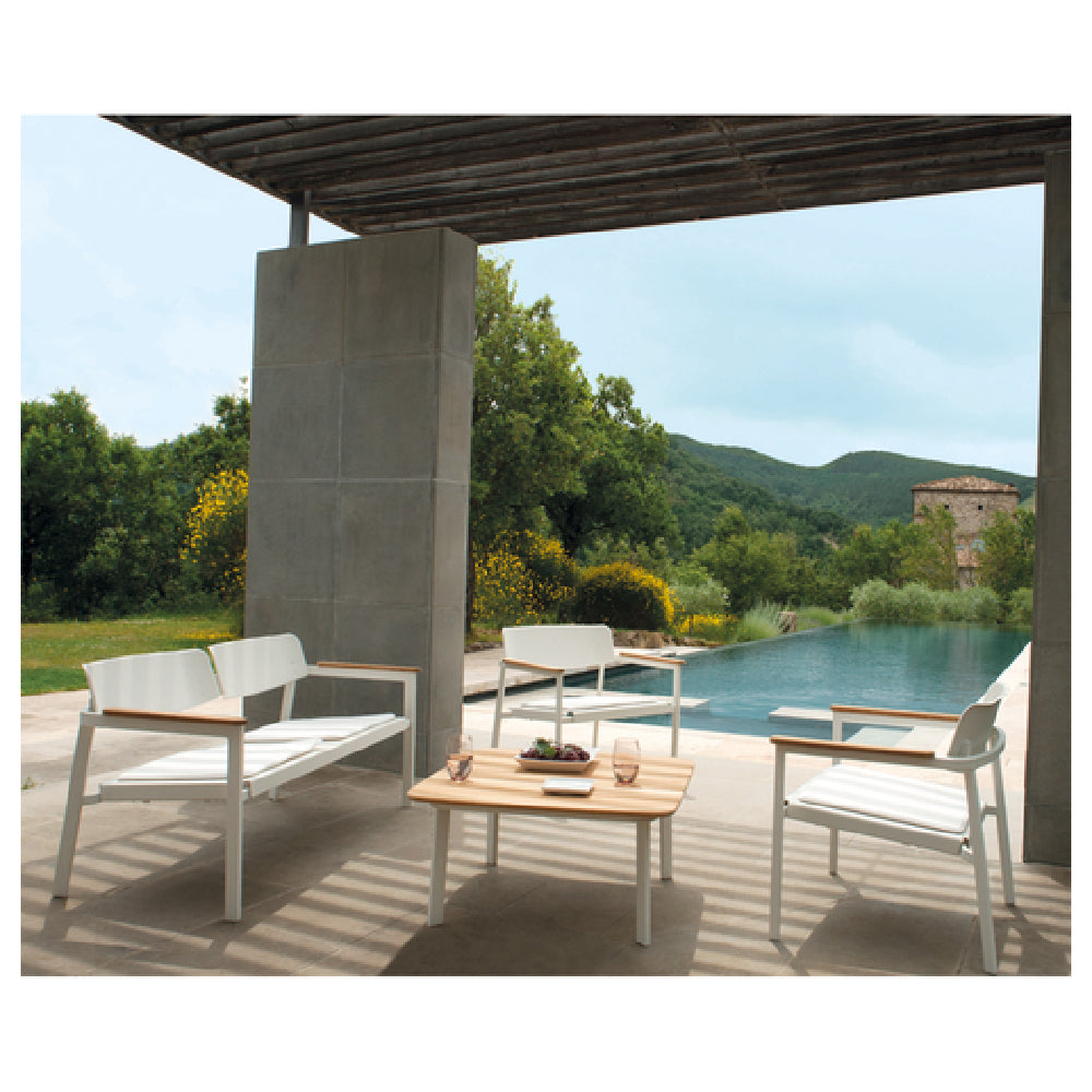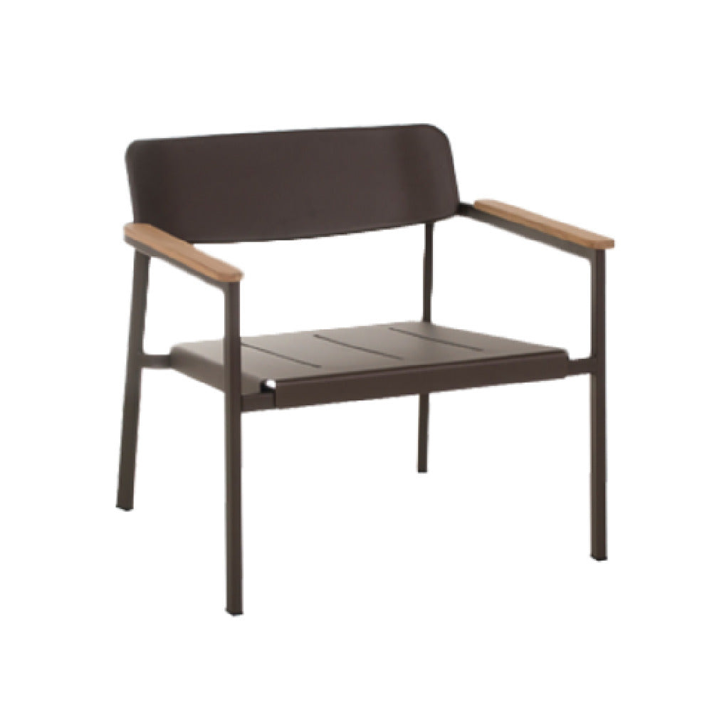 The Emuamericas Llc E249 Shine Stacking Lounge Chair Outdoor/Indoor Slat Seat And Solid Back is a versatile piece of furniture designed for both outdoor and indoor use. This lounge chair features a slat seat and a solid back, providing both comfort and a sleek aesthetic. The inclusion of teak armrests adds a touch of natural elegance, enhancing the overall design. The chair is constructed with durable aluminum and finished with a powder coat to ensure long-lasting durability against the elements. Its square tube legs contribute to its sturdy structure, while the PVC foot caps help protect surfaces from scratches and scuffs. The stacking ability of the E249 Shine Lounge Chair makes it an ideal choice for those looking to save space, whether in a residential patio setting or a commercial hospitality environment. With the combination of materials and design, this chair offers a unique value proposition for various market segments, from homeowners seeking stylish outdoor furniture to businesses in need of functional and aesthetically pleasing seating solutions. The Emuamericas Llc E249 seamlessly blends functionality and style, making it a sought-after option for multiple applications.