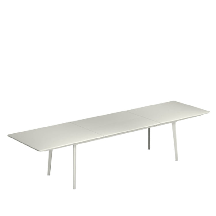 The Emuamericas Llc E3486-41 Plus4 Extension Table Rectangular 86.5"-43.5" x 36" x 30" H is a versatile piece designed for both outdoor and indoor environments, making it a valuable asset across various market segments. This table is meticulously crafted with a solid steel top and features square steel legs, ensuring robust durability for long-term use. The e-coated steel construction, complemented by a powder-coated finish, provides enhanced resistance to weather and corrosion, making it ideal for outdoor settings such as patios, gardens, and commercial terraces. Additionally, the table's dimensions of 86.5"-43.5" in length, 36" in width, and 30" in height, offer ample space for dining and social gatherings, catering to both residential and commercial needs. The inclusion of PVC foot caps protects flooring surfaces and adds to its functional design. The Emuamericas E3486-41 table’s adaptability and solid build make it suitable for a range of applications, from family dining to professional hospitality environments, providing a practical yet stylish solution for diverse seating arrangements.