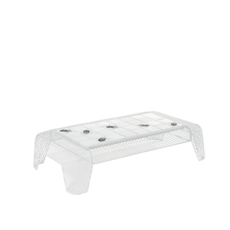 The Emuamericas Llc E589 Ivy Low Table Rectangular 53" X 29" X 12" H is a versatile piece designed to enhance both outdoor and indoor settings. This table features a substantial size of 53 inches by 29 inches, with a height of 12 inches, providing ample space for a variety of uses. Crafted from large extended steel mesh, the table ensures durability and stability, making it suitable for different environments. The e-coated steel construction offers robust protection against the elements, while the powder-coated finish adds an extra layer of resilience and aesthetic appeal. One of the unique aspects of this table is the option to choose between fish or scrabble tiles, allowing users to customize the tabletop design to suit their preferences and decor needs. The inclusion of PVC foot caps ensures floor protection and stability on various surfaces. With its combination of practicality and customizable aesthetics, the Emuamericas Llc E589 Ivy Low Table is well-suited for residential patios, commercial outdoor spaces, and indoor settings, providing a stylish and functional solution for diverse market segments within the furniture industry.