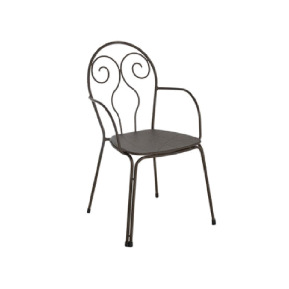The Emuamericas Llc E931 Caprera Stacking Armchair is a versatile seating solution designed for both outdoor and indoor environments. This armchair features a sturdy steel back with an intricate design pattern, offering both aesthetic appeal and structural integrity. Its wrought iron frame adds to its durability, making it an ideal choice for various settings from residential patios to commercial spaces. The chair is finished with an e-coated powder coat, providing excellent resistance to weather elements and ensuring longevity, making it suitable for diverse climates and uses. Additionally, the inclusion of PVC foot caps ensures that floors remain unscathed, whether used on delicate indoor surfaces or rugged outdoor terrains. The stackable design of the Caprera armchair allows for efficient storage and space management, a highly beneficial feature for businesses with fluctuating seating needs such as cafes, restaurants, or event venues. Each detail of the Emuamericas Llc E931 Caprera Stacking Armchair is meticulously crafted, establishing it as a reliable and stylish seating choice, tailored for a wide range of environments and market segments in the furniture industry.