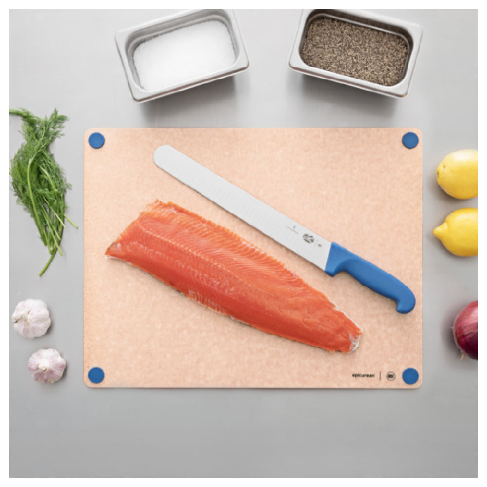 Epicurean Cutting Surfaces, LLC, 622-19150119, Epicurean HACCP Non-Slip Cutting Board 19.5" x 15" x 3/8" in Natural with Blue Seafood Feet, Epicurean Paper Composite, NSF Certified, Dishwasher Safe, Stain Resistant, Heat Resistant to 350F, Knife Safe of US and Imported Parts