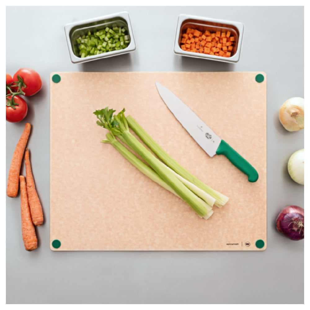 Epicurean Cutting Surfaces, LLC, 622-23190105, Epicurean HACCP Non-Slip Cutting Board 23" x 19" x 3/8" in Natural with Green Produce Feet, Epicurean Paper Composite, NSF Certified, Dishwasher Safe, Stain Resistant, Heat Resistant to 350F, Knife Safe of US and Imported Parts
