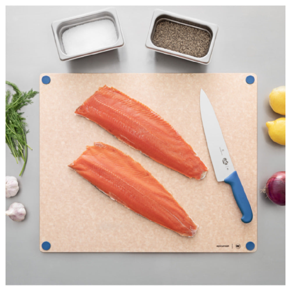 Epicurean Cutting Surfaces, LLC, 622-23190119, Epicurean HACCP Non-Slip Cutting Board 23" x 19" x 3/8" in Natural with Blue Seafood Feet, Epicurean Paper Composite, NSF Certified, Dishwasher Safe, Stain Resistant, Heat Resistant to 350F, Knife Safe of US and Imported Parts