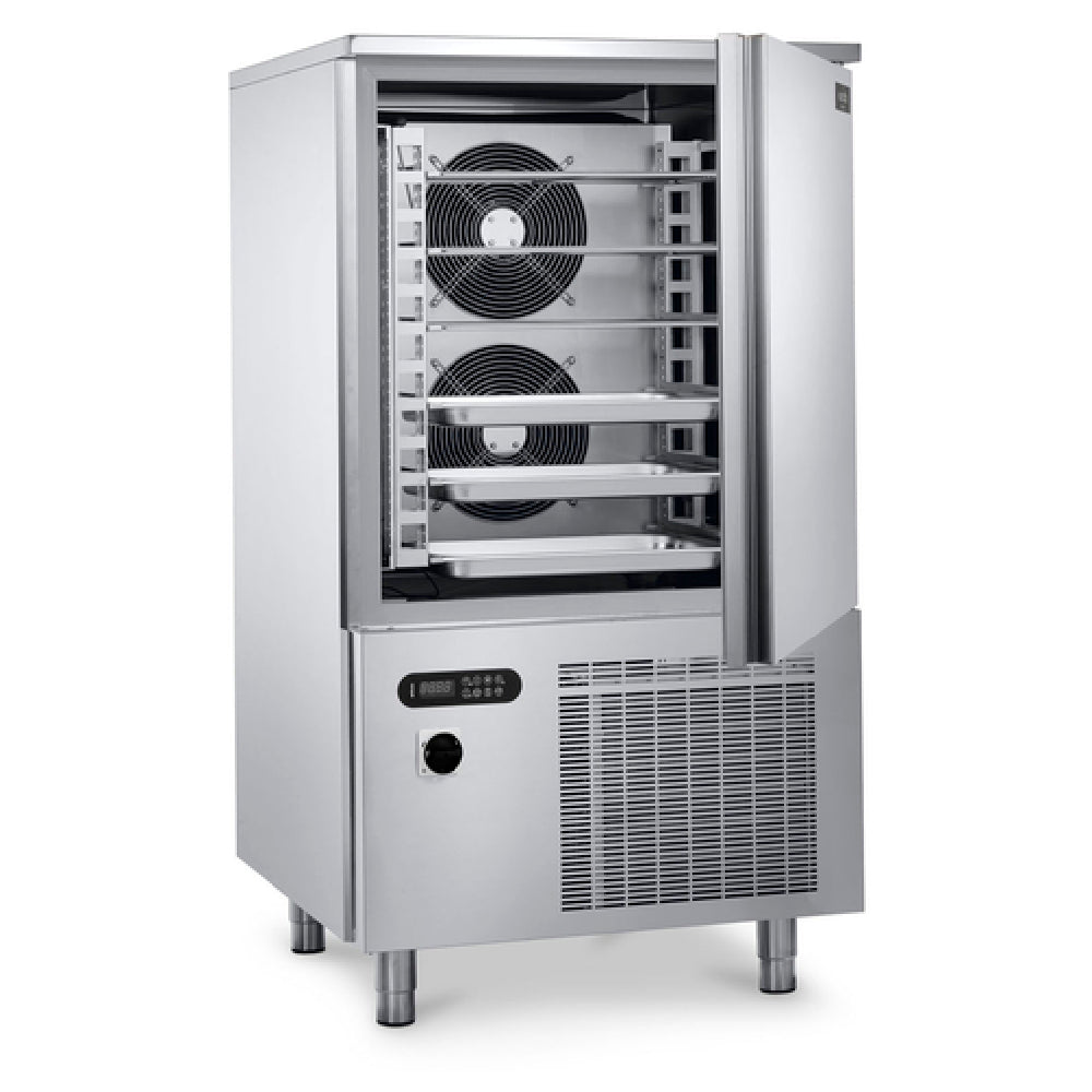 Eurodib USA, BCB10US220, Gemm® Commercial Blast Chiller/Freezer, reach-in, single section, self-contained, (10) 18" x 26" pan capacity, 75 lb. capacity (chilling) or 48-1/2 lb. capacity (freezing), 197°F to 37°F chilling, 197° to 0°F freezing, auto defrost with pause, (1) solid hinged door, stainless steel interior & exterior, stainless steel adjustable legs, R449A, 1.5 HP, 3105 watts, 208-230v/60/1-ph, 13.5 amps, cord, NEMA 6-20P, cETLus, ETL-Sanitation, Made in Italy
