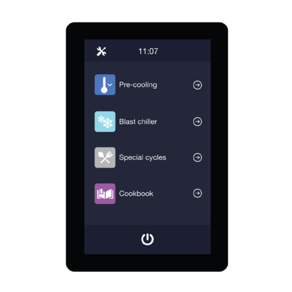 Eurodib USA, BCT10US220, Gemm® BCB Blast Chiller, reach-in, single section, self-contained, (10) tray capacity (not included), 7" color touch-screen control panel, displays in (8) languages, time & probe cycles, programmable, recipe book mode, 1-1/2 HP, 3105W, 208-230v/60/1-ph, 13.5 amps, NEMA 6-20P, cETLus