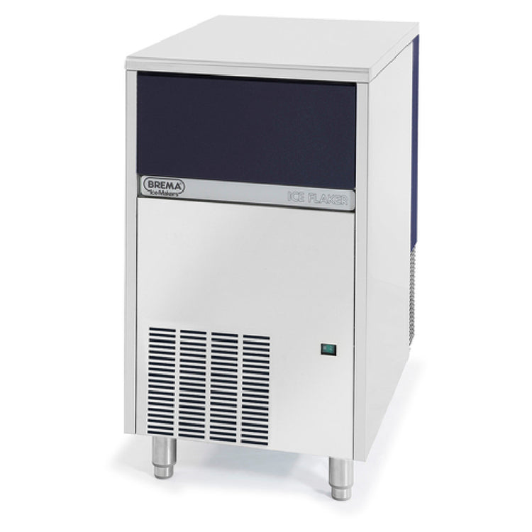 Eurodib USA, GB903AHC, Brema® Undercounter Ice Maker with Bin, flake-style, air-cooled, self-contained refrigeration, 253 lbs production/24hour, 66 lbs storage capacity, electro-mechanical operation, 4‐5/16" to 5‐14/16" adjustable feet, 18/10 stainless steel, ANSI-304 interior finish, Scotch Brite exterior finish, R290 Hydrocarbon refrigerant, 450 watts, 115v/60/1-ph, 4.5 amps, NEMA 5-15P, NSF, ETL-Sanitation, cULus, cUL, Made in Italy