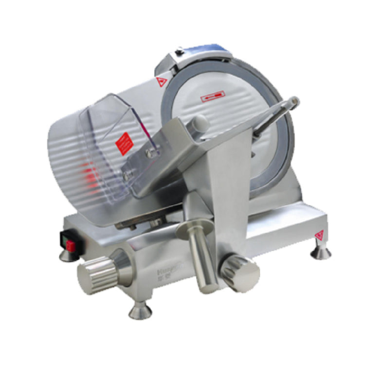 Eurodib USA, HBS250L, Meat Slicer, 10" blade, blade sharpener, belt drive, Perspex protector guard, waterproof and emergency shut off switch, anodized aluminum, 1.4 amps, 150 watts, 1/5 hp, cETLus, ETL-Sanitation