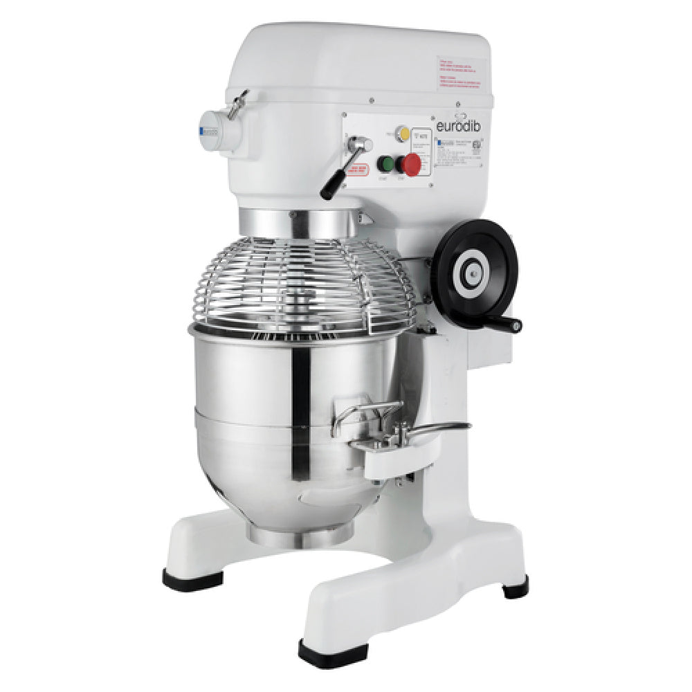 Eurodib USA, M30AETL220, Planetary Mixer, 30 quart capacity, #12 hub available, 3 speeds, stainless steel bowl, hook, whip & beater, painted cast iron base, 2 HP, 3.3kW, 220v/60/1-ph, 15 amps, NEMA 6-20P, cETLus (not recommended for pizza, pita or bread dough or any equivalent product)