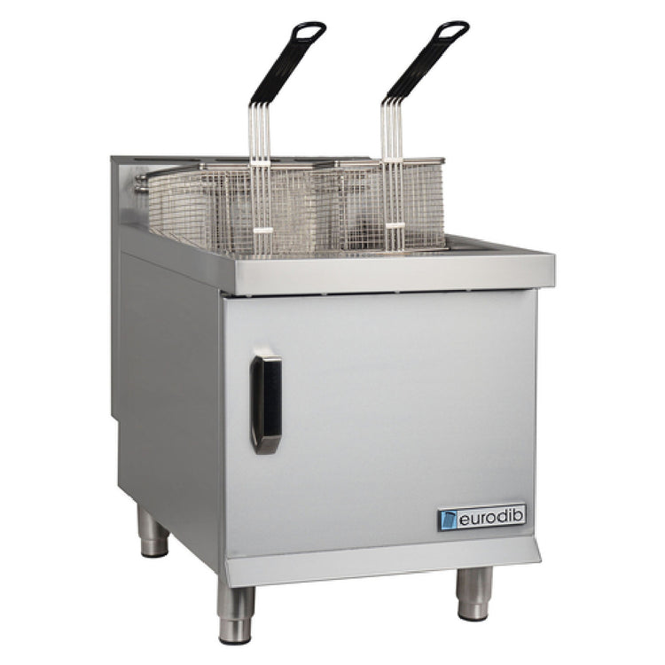 Eurodib USA, TCF30, Eurodib Fryer, countertop, natural gas, full pot, (4) burners, (2) fryer baskets, 30 lb capacity, thermostatic controls, piezo ignition and pilot light, burner safety valves, flame failure, attachable drain connection, stainless steel construction and finish, (4) adjustable feet, 53,000 BTU, cETLus, ETL-Sanitation