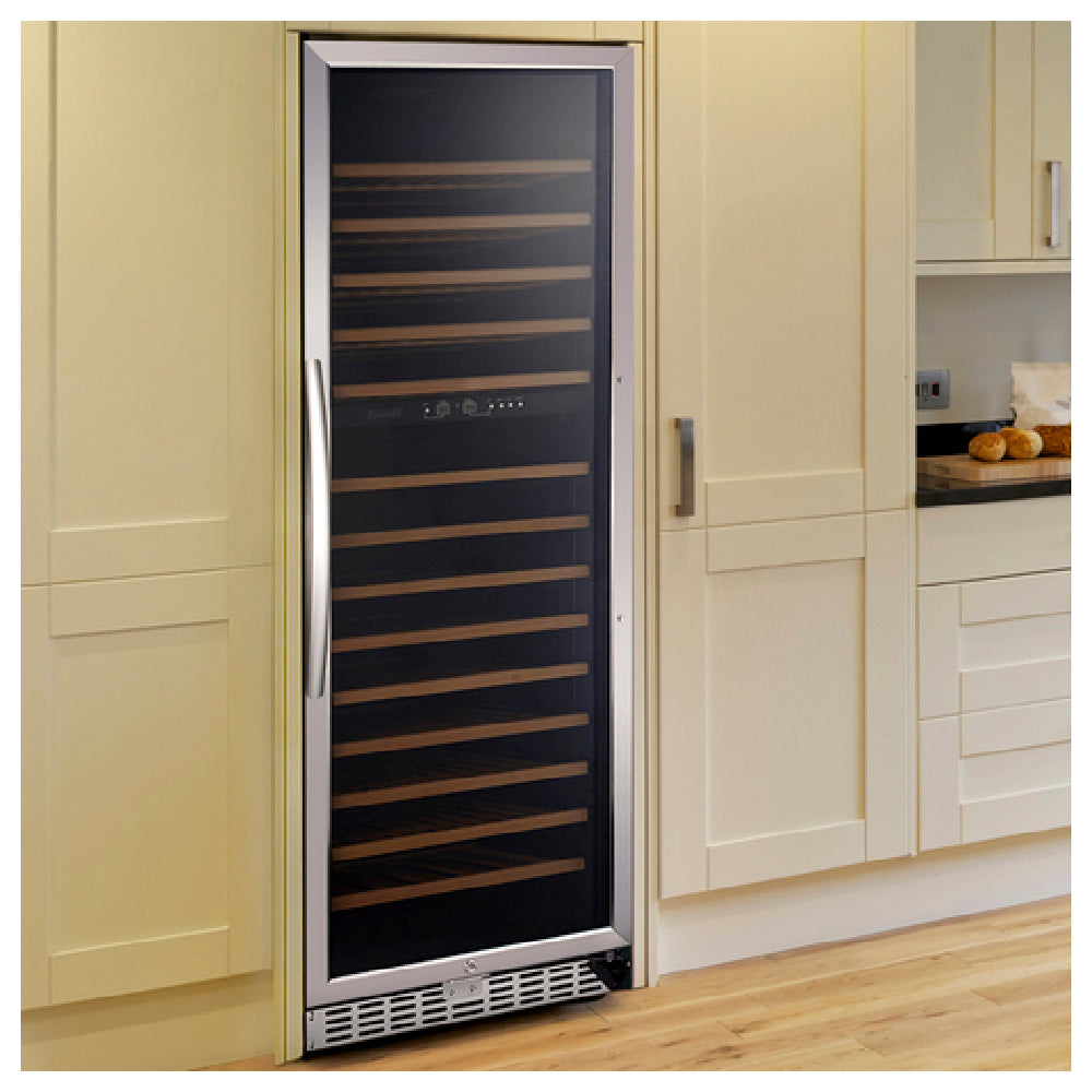 Eurodib USA, USF168S, Eurodib Urban Style Wine Cabinet, reach-in, one-section, self-contained, (165) bottle capacity, single temperature zone, temperature range: 41° to 64.4°F, fan forced evaporator cooling system, interior LED lighting, adjustable feet, (15) beech wood shelves, stainless steel framed glass door, black finished sides, R600a, 110v/60/1-ph, 1.7 amps, 0.14kW, NEMA 5-15P, CSA