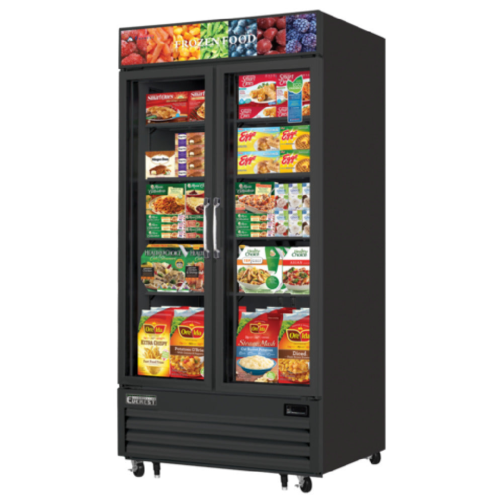 Everest Refrigeration EMGF36B Reach-In Glass Door Merchandiser Freezer Two-section