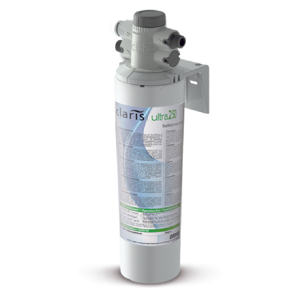 The Everpure EV433980 Everpure® Claris™ Ultra 250-S Replacement Cartridge Claris™ Ultra 250-S is engineered to enhance water quality for a variety of commercial and residential applications. This replacement cartridge, identified by its model number EV433980, is designed to remove particles, taste, and odor from water, improving both safety and palatability. It boasts a filtration capacity of 660 gallons, making it a reliable choice for medium-scale usage. Operating at a flow rate of 0.5 gallons per minute and featuring a 5-micron filtration system, this cartridge effectively captures impurities while maintaining a consistent water flow. The Everpure Claris™ Ultra 250-S is particularly valuable in settings where water quality is critical, such as in the food and beverage industry, healthcare facilities, and hospitality services. Its unique ability to maintain optimal taste and odor reduction ensures that it meets the demands of diverse markets, from cafes and restaurants to office environments and medical establishments. The cartridge's design focuses on efficiency and performance, providing users with a practical solution for water filtration needs. This product represents Everpure's commitment to delivering high-quality water filtration solutions that cater to varied customer requirements across different sectors.