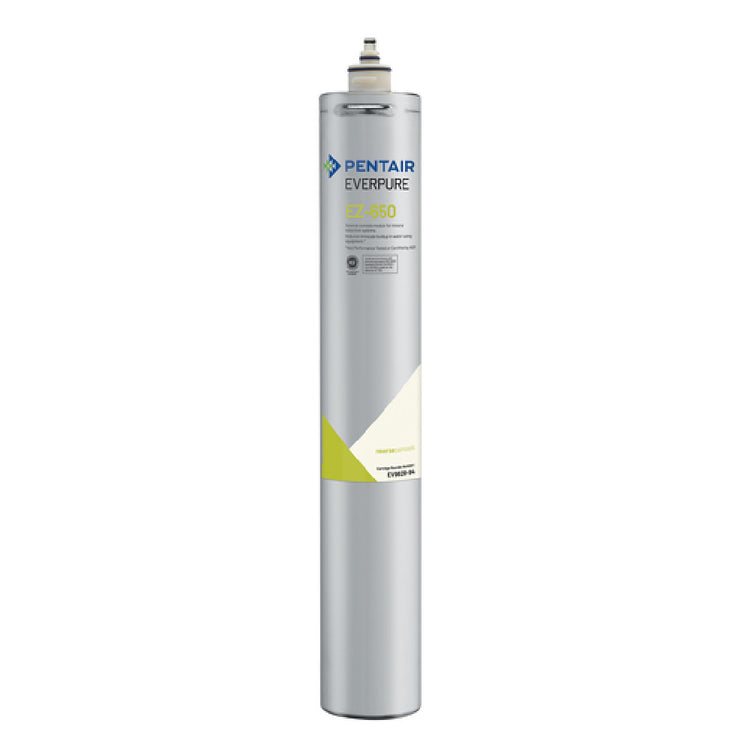Everpure EZ-650 Replacement Cartridge - The Everpure EZ-650 Replacement Cartridge is a highly efficient membrane cartridge engineered specifically for use with the EZ-RO 650 series reverse osmosis (RO) systems. This replacement component is designed to significantly reduce Total Dissolved Solids (TDS), ensuring high-quality water output. With an impressive production rate of 650 gallons per day (2046 liters per day), it caters to both small-scale and large-scale water purification needs in various industrial and commercial settings. The EZ-650 Replacement Cartridge, identified by the model number EV962894, supports the maintenance of optimal water quality, which is crucial for sectors that heavily rely on pure water, such as the food and beverage industry, laboratories, and healthcare facilities. Its compatibility with the EZ-RO 650 system ensures seamless integration and operation, providing users with a reliable solution for their water filtration requirements. The cartridge's advanced design and efficient performance make it a valuable asset for businesses aiming to achieve stringent water quality standards, offering a perfect balance of functionality and dependability. This product is essential for ensuring consistent production of high-purity water, vital for varied applications across different market segments within the water treatment industry.