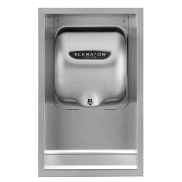 The Excel Dryer 40502 XLERATOR® Hand Dryer Recess Kit is an expertly engineered solution designed to meet specific architectural and efficiency needs in commercial spaces. This recess kit, measuring 16-3/8"W x 3-3/8"D x 26"H, ensures compliance with the ADA protrusion requirement of 4" (102mm), making it suitable for facilities prioritizing accessibility. Its robust construction features a welded 22-gauge wall box paired with a sturdy 16-gauge mounting plate, ensuring reliable installation and longevity. Made from 304 18/8 brushed stainless steel, the kit presents a sleek satin finish that complements modern restroom aesthetics while offering durability and resistance to corrosion. Proudly made in the USA, this recess kit is designed to seamlessly integrate with the XLERATOR® hand dryer, enhancing its performance while optimizing space utilization. The combination of high-quality materials and meticulous design ensures that the Excel Dryer 40502 XLERATOR® Hand Dryer Recess Kit is an invaluable asset for businesses across various sectors, from healthcare to hospitality, that demand efficient, compliant, and stylish restroom solutions.
