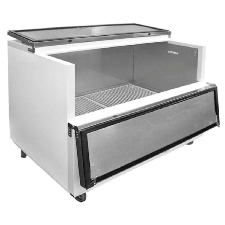 The Excellence MCSC-12 School Milk Crate Cooler is an efficient cooling unit designed to support commercial and educational environments with a substantial capacity of 41 cubic feet. It efficiently accommodates either twelve 13" x 13" x 11" crates or eight larger 19" x 13" x 11" crates, making it versatile for varied storage needs. The cooler operates within a temperature range of 32-38°F, regulated by an electronic thermostat with a digital LED display for precise temperature management. Built with a robust cold wall evaporator system and equipped with R134a refrigerant, this unit ensures consistent cooling performance. The cooler's structure includes a stainless steel locking lid and interior, enhancing durability, while the painted white exterior ensures a streamlined appearance. Mobility is facilitated by four 4" casters, making relocation within your facility straightforward. Operating at 115 volts with a 3/8 HP compressor, it draws 6.0 amps and is equipped with a NEMA 5-15P plug. This model meets cETLus, ETL-Sanitation, and DOE 2017 standards, ensuring compliance with safety and energy efficiency regulations. Normally stocked in Reno, NV 89502 and Plant City, FL 33565, the MCSC-12 is a reliable and versatile cooling solution for various industries.