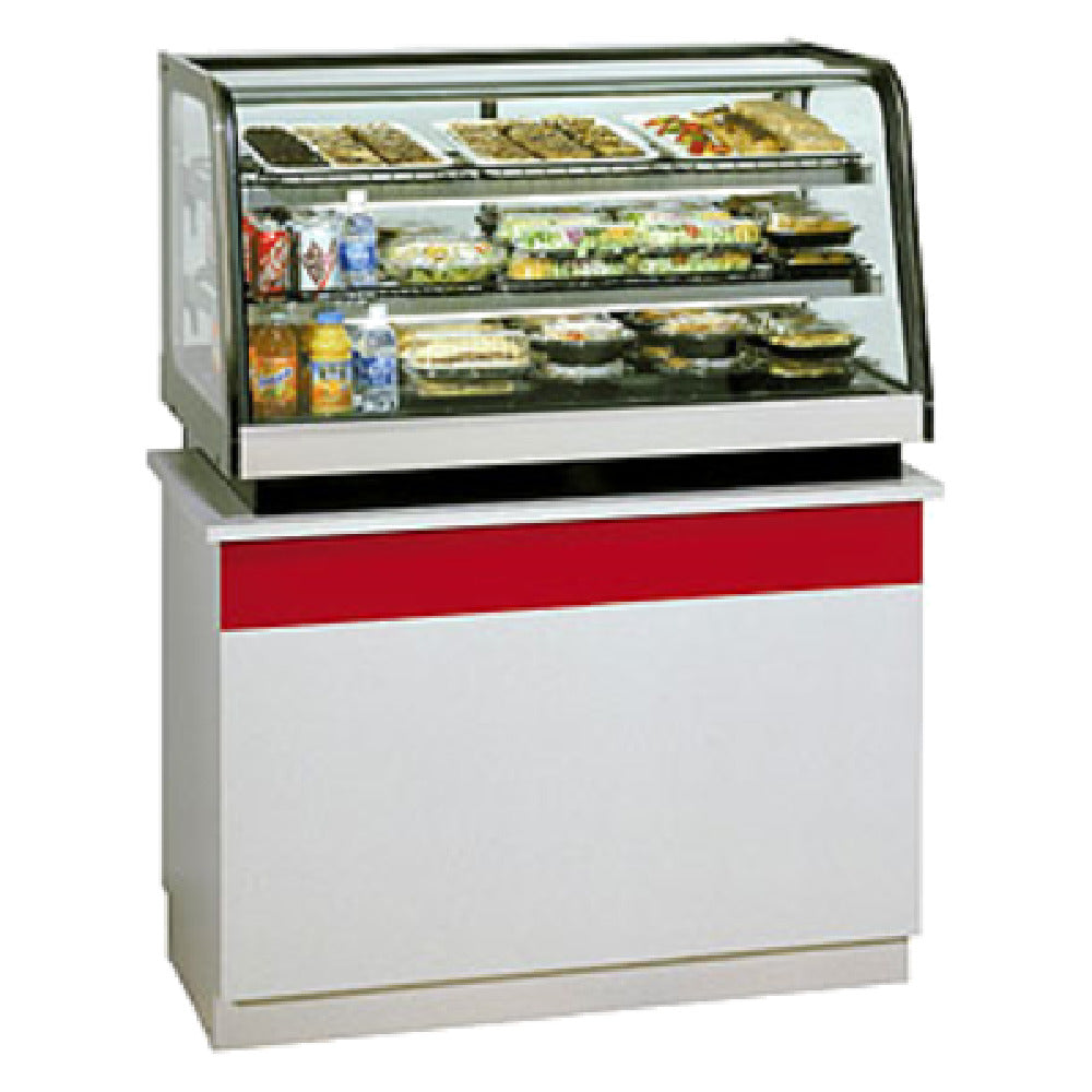 The Federal Industries CRR3628 Counter Top Refrigerated Rear Mount Merchandiser is a meticulously designed unit that caters to diverse market segments needing compact yet efficient refrigeration solutions. Measuring 36" wide by 30" deep and 27.83" high, this merchandiser offers a self-contained refrigeration system complemented by a condensate evaporator, ensuring optimal temperature control and maintenance. Its thermopane curved glass front not only enhances aesthetic appeal but also maximizes product visibility, crucial for boosting sales in retail environments. Equipped with a 3500K LED top light and lighted shelves, the unit illuminates products effectively, drawing customer attention. Two tiers of adjustable black wire shelves provide flexible display options, while the removable black display deck allows for easy cleaning and reconfiguration. Constructed with black painted metal and stainless materials accented by a sleek black trim, this merchandiser combines durability with style. The removable sliding glass rear doors and clear end panels facilitate seamless access and enhance the display. Designed to be set directly on a counter, it is both space-efficient and accessible, making it a valuable asset for small to medium-sized retail spaces. The unit is cULus and UL EPH Classified, compliant with DOE 2017 standards, and proudly made in the USA, ensuring quality and regulatory adherence.