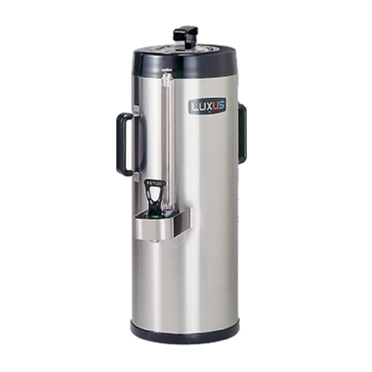 The Fetco D009 TPD-15 LUXUS® Thermal Dispenser is a highly functional 1.5-gallon unit expertly crafted from stainless steel, offering exceptional durability and a sleek appearance. This dispenser is designed with a twist and remove lid, allowing for easy access and handling. Its thermal insulation ensures that beverages remain at the desired temperature for extended periods, making it an ideal choice for catering services, cafes, and corporate events. The inclusion of faucet and gauge guards adds an additional layer of protection, ensuring the longevity and reliability of the dispenser's components. Side handles are incorporated to facilitate safe and convenient transportation, enhancing its versatility in various settings. The Fetco D009 TPD-15 LUXUS® is a robust and efficient solution for any environment requiring reliable beverage service, combining practicality with a high-quality construction that meets the demands of different market segments within the beverage industry.