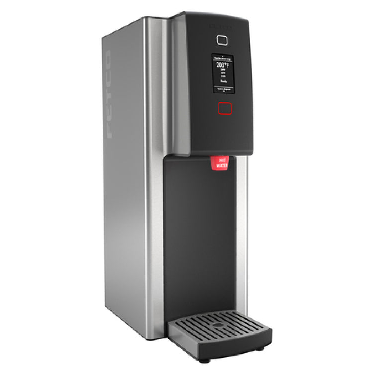FETCO, H210511, Hot Water Dispenser, 5 gallon, single programmable temperature range from 158°F to 203°F, lock mode, touch function operation, soft silicone tap, drip tray overflow indicator, hi-resolution display, mixed material construction, 1 x 1.44kW heater, 120v, 1-ph, 2+G wires, 12.0 max amp draw, 1.5kW, NEMA 5-15P, 4.0 gallons per hour, UL, cUL, NSF