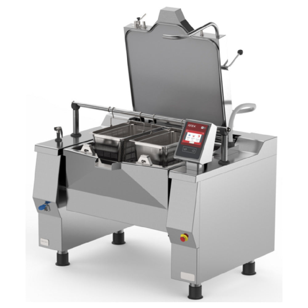 The Firex UDBRE038ACV1 Betterpan Tilting Skillet Pressure Braising Pan-electric is a versatile kitchen appliance designed to enhance cooking efficiency in large-scale culinary operations. With a substantial 38-gallon capacity, this electric braising pan is equipped with programmable electronic controls and a 7-inch touch screen, providing precise cooking management and ease of use. The auto-fill feature and spring-balanced hinged lid with a reinforced locking system ensure seamless operation and safety. A core temperature probe is fixed at the lid, allowing for accurate temperature monitoring, essential for achieving perfect cooking results. The automatic listing system and USB connection add to its convenience and functionality. Constructed from robust stainless steel, the pan boasts adjustable feet for stability and a pressure rating of 5.8 PSI, making it suitable for high-pressure cooking tasks. Its IPX5 rating highlights its resistance to water exposure, ensuring durability in rigorous kitchen environments. Certified by cETLus and ETL-Sanitation, the Firex UDBRE038ACV1 meets stringent safety and sanitation standards. This braising pan is an excellent choice for professional kitchens seeking reliability, efficiency, and precision in cooking large quantities, catering to various segments within the food service industry, including restaurants, hotels, and catering businesses.