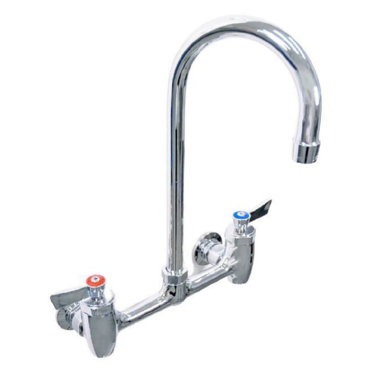 Fisher, 13280, Faucet, backsplash mount, 8” centers, 12” gooseneck spout, lever handles with color coded indexes, 1/2” NPT male inlets, brass, ceramic stems, ADA Compliant