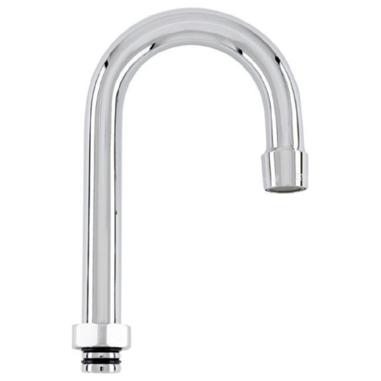 The Fisher 14168 Gooseneck Spout 6" Swivel is expertly crafted to meet the high demands of both residential and commercial applications. This gooseneck spout features a compact 6-inch design, making it an ideal choice for environments where space efficiency is paramount. Its swivel functionality allows for enhanced flexibility and ease of use, ensuring that it can be maneuvered to accommodate various tasks and sink configurations. The spout is equipped with a 0.5 gallons per minute (gpm) aerator, which promotes water efficiency by reducing water flow without compromising performance. This makes it particularly valuable in settings where water conservation is a priority, such as in sustainable building projects or eco-conscious establishments. The robust construction of the Fisher 14168 ensures longevity and reliability, attributes that are essential for both industrial kitchens and residential installations. Versatile in its application, this gooseneck spout is not only a functional fixture but also contributes to the aesthetic appeal of any space with its sleek design. Whether in a bustling restaurant kitchen or a home seeking water-efficient solutions, the Fisher 14168 Gooseneck Spout 6" Swivel stands out as a precise and practical plumbing component.