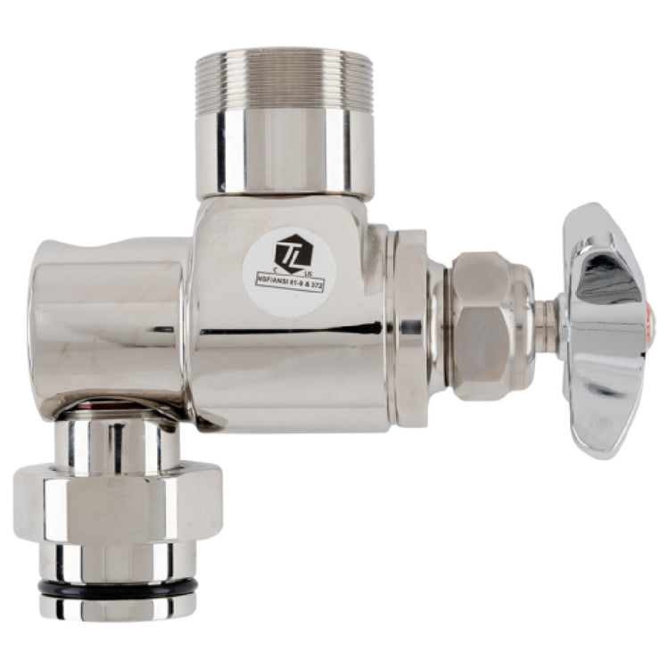 The Fisher 21482 Add-On Faucet With 2-part Swivel Spout & 4" Riser Cross Handle With Color Coded Button is a sophisticated fixture designed for both commercial and residential applications requiring flexibility and precision. Constructed with durable brass, this faucet ensures long-lasting performance and reliability in various demanding environments. Its 2-part swivel spout offers enhanced maneuverability and ease of use, allowing for versatile water direction suitable for diverse kitchen and industrial tasks. The 4" riser elevates the faucet, providing added height for accommodating larger pots and containers. The cross handle design is equipped with a color-coded button, facilitating easy identification and operation, thus enhancing user convenience and safety. With 3/4" inlets, it supports robust water flow, making it an ideal choice for settings that demand high efficiency. The Fisher 21482 faucet is particularly suitable for commercial kitchens, food service establishments, and any setting where precise water delivery and control are paramount. Its combination of functional features and sturdy construction makes it a valuable addition to any professional environment, ensuring both efficiency and ease of use for various tasks.