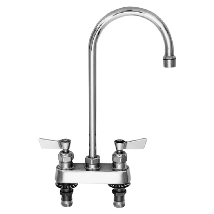 The Fisher 35150 Faucet Deck Mount 4" Centers is an expertly designed fixture ideal for various applications in commercial and residential settings. This faucet boasts a 12" swivel gooseneck spout, providing extensive reach and versatility, making it particularly useful in areas requiring frequent directional adjustments. Equipped with lever handles that include color-coded indexes, it ensures user-friendly operation, promoting ease of use across diverse user demographics. The faucet features 1/2" NPT male inlets, which are standard in many plumbing installations, enhancing its compatibility with existing systems. Constructed from durable brass, it promises longevity and resistance to wear and corrosion, an essential factor for high-traffic usage. Furthermore, the Fisher 35150 is ADA Compliant, demonstrating its accessibility and compliance with health and safety standards, making it suitable for use in public and institutional environments. The 4" centers design simplifies installation and retrofit applications, appealing to contractors and property managers seeking efficient and reliable solutions. By integrating these features, this faucet stands as a high-quality, versatile choice for professionals looking to balance functionality with compliance and durability in their water dispensing solutions.