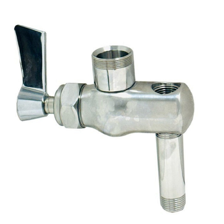The Fisher 38318 Add-On Faucet - less spout with 4" riser - is meticulously engineered for professional applications, particularly within the foodservice and hospitality industries. This unit is crafted from high-quality stainless steel, ensuring durability and resistance to corrosion, making it a reliable choice for environments that demand rigorous sanitation standards. The absence of a spout in this model allows for greater customization and flexibility, enabling users to select and attach a spout that best fits their specific needs and workflows. The 4" riser component elevates the faucet, providing additional clearance and accommodating a variety of sink configurations and tasks. This feature is particularly advantageous in commercial kitchens where space and efficiency are paramount. The Fisher 38318's robust construction and versatile design make it an invaluable addition to any kitchen, offering practicality and adaptability that align with the diverse requirements of different market segments, from restaurant chains and hotels to institutional kitchens and catering services. Its straightforward installation process, combined with the enduring quality of stainless steel, ensures that this add-on faucet meets the high standards expected by professionals in the industry, emphasizing both form and function in its design.