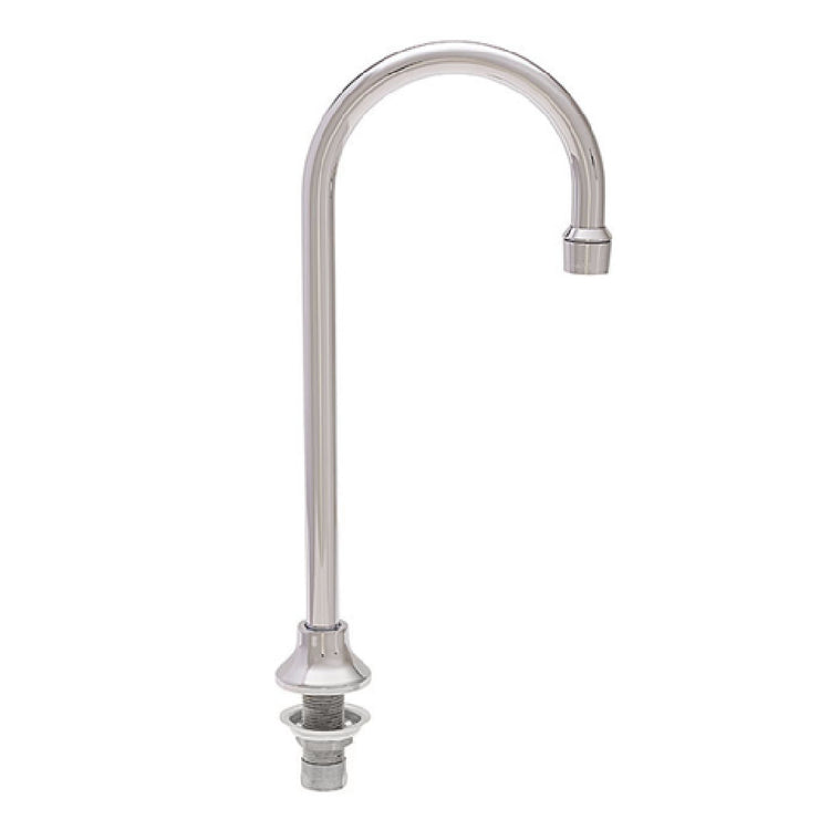 The Fisher 45748 Gooseneck Spout, deck mount - 6", is a versatile fixture designed to meet various plumbing needs across different market segments. Equipped with a 6-inch swivel spout, it allows for flexible maneuverability and is ideal for use in commercial kitchens, laboratories, and industrial settings where adaptability is crucial. The gooseneck design is constructed from durable stainless steel, ensuring longevity and resistance to corrosion, which is especially important in environments where hygiene and robustness are paramount. Featuring a 2.2 GPM aerator, this spout provides an efficient flow rate, optimizing water usage without compromising performance. This makes it suitable for applications where water conservation is a priority. The deck-mounted configuration facilitates easy installation and maintenance, making it a practical choice for professionals seeking reliable performance and ease of use. The Fisher 45748 Gooseneck Spout combines technical precision with high-quality materials, catering to industries that demand both functionality and durability in their equipment.