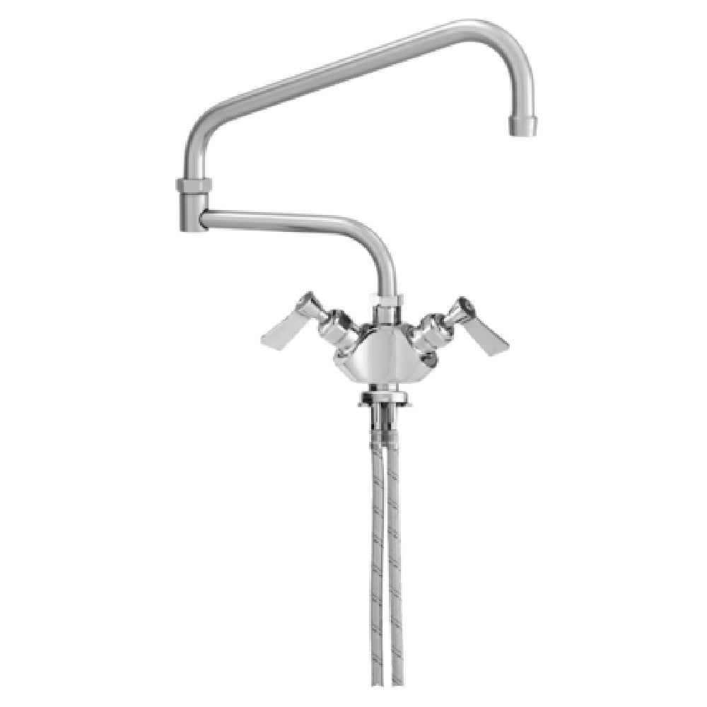 The Fisher 52841 Faucet Deck Mount Single Hole is a meticulously designed plumbing fixture, ideal for commercial and residential applications requiring precision and durability. Featuring a dual control system, it allows for easy management of water flow and temperature. The faucet's 10-inch swing spout is complemented by a 7-inch double-jointed assembly, offering versatile maneuverability and reach, perfect for varied sink sizes and applications. Lever handles with color-coded indexes facilitate intuitive operation, ensuring user convenience and reducing training time for new users. With 1/2-inch female inlets, this faucet provides standard connectivity to existing plumbing systems, reducing installation complexity. Fabricated from high-quality stainless steel, it promises longevity and resistance to corrosion, maintaining its pristine appearance in high-use environments. Importantly, the Fisher 52841 is ADA Compliant, making it accessible and user-friendly for individuals with disabilities, ensuring inclusivity in all settings. This faucet stands out in the industry for its blend of functionality, ergonomic design, and compliance with accessibility standards, making it a valuable asset for various market segments including hospitality, healthcare, and culinary establishments, or any setting where quality and accessibility are paramount.