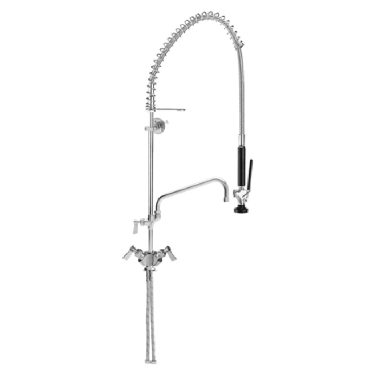 The Fisher 53015 Pre-Rinse Unit Single-deck Mounted Add-On-Faucet With 6" Swing Spout is a high-quality fixture designed for efficiency and durability in commercial kitchen environments. This unit is particularly beneficial for restaurants, catering services, and institutional kitchens that require robust pre-rinsing capabilities. It features a single-deck mounted setup, making it a space-efficient solution for busy workspaces. The add-on faucet with a 6-inch swing spout provides flexibility and ease of use, allowing for seamless transitions between rinsing tasks. Constructed from stainless steel, this pre-rinse unit ensures longevity and resistance to corrosion, ideal for environments where frequent usage and high moisture levels are factors. The dual control feature offers precise water temperature and flow adjustments, catering to diverse rinsing needs in professional kitchen settings. The Fisher 53015 unit is engineered to meet the rigorous demands of the food service industry, providing reliable performance and enhancing operational efficiency. Its thoughtful design combines practicality with a robust build, making it an essential tool for any culinary professional seeking to optimize their kitchen workflow. Its technical specifications embody a blend of functionality and resilience, tailored to meet the varying demands of different market segments within the industry.