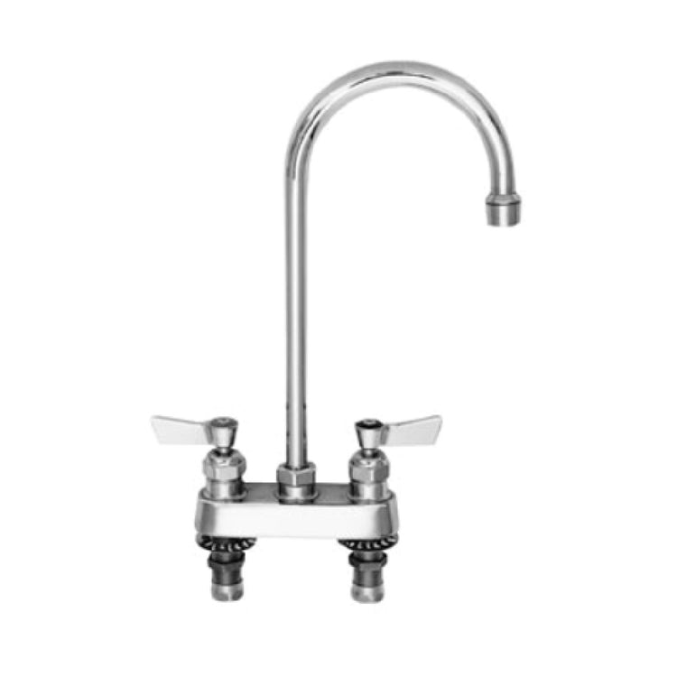 The Fisher 53872 Faucet Deck Mount 4" Centers is a precision-engineered fixture tailored for both commercial and residential applications, offering a blend of functionality and compliance. This faucet features a 6" swivel/rigid gooseneck spout that can be secured in place using the included star washer, providing flexibility or firmness according to user needs. The lever handles are equipped with color-coded indexes, ensuring ease of use and enhancing operational efficiency. Designed for robust plumbing systems, it features 1/2" male inlets that facilitate a secure and reliable connection. Crafted from stainless steel, this faucet promises durability and resistance to corrosion, making it ideal for high-use environments. Furthermore, the Fisher 53872 is ADA Compliant, underscoring its accessibility and adherence to regulatory standards, which is crucial for inclusive design in public and private spaces. This faucet is an excellent choice for industry professionals seeking a durable, easy-to-install solution for new construction or renovation projects, as well as for homeowners aiming to enhance their kitchen or bathroom with a high-quality fixture. Its precise specifications and reliable performance make it a valuable asset across various market segments within the plumbing industry.