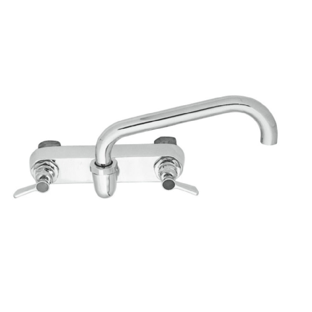 The Fisher 5412 Faucet Backsplash Mount 8" Control Valve With Elbows is a meticulously designed plumbing fixture that integrates seamlessly into diverse professional environments. Its centerpiece is the 8-inch control valve, engineered with precision to ensure reliable water flow management. Accompanied by robust elbows, this faucet adapts effortlessly to various installation requirements. The 10-inch swing spout adds a layer of functionality, allowing for easy maneuverability and extended reach, which is particularly beneficial in commercial kitchens and busy workspaces. Equipped with lever handles featuring color-coded indexes, users can swiftly identify and adjust water temperatures, enhancing operational efficiency. The 3/4-inch inlets cater to substantial water pressure needs, ensuring consistent performance in high-demand settings. Crafted from durable brass, this faucet promises longevity and resistance to wear, making it a sound investment for sectors ranging from hospitality to healthcare. Its thoughtfully designed features cater to professional needs, ensuring this backsplash mount faucet stands out in terms of functionality and reliability.