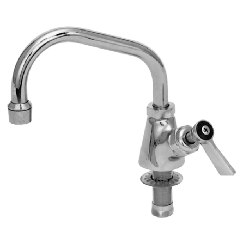 The Fisher 58009 Faucet Deck Mount Single Hole is a highly functional and durable fixture designed for versatility in various industrial settings. Featuring a streamlined 6-inch swing spout, this faucet provides ample reach and maneuverability for tasks demanding precision and ease. The lever handle allows for smooth operation, ensuring effortless control over water flow, which is crucial for maintaining efficiency in fast-paced environments. With a 1/2-inch male inlet, the Fisher 58009 facilitates straightforward installation, making it a practical choice for both new setups and replacements. Constructed from robust stainless steel, it promises long-lasting performance and resistance to corrosion, factors that are imperative in maintaining hygiene and safety standards. The faucet's ADA compliance underscores its accessibility, catering to all user needs and ensuring inclusivity in your workspace. Ideal for sectors ranging from hospitality to healthcare, the Fisher 58009 Faucet Deck Mount Single Hole stands out for its reliable construction and user-centric design, making it an optimal choice for professionals seeking quality and dependability in their plumbing fixtures.