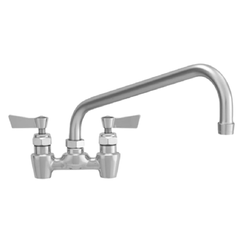 The Fisher 62049 Faucet Backsplash Mount 4" Centers is engineered for both functionality and compliance, making it an essential component for diverse industrial and commercial settings. This faucet features a 12-inch swing spout, allowing for flexible water direction, which is particularly beneficial in busy kitchens or industrial wash stations. The design incorporates lever handles with color-coded indexes, simplifying operation and enhancing usability, especially in fast-paced environments where efficiency is key. The faucet's 1/2" NPT male inlets ensure compatibility with standard plumbing fittings, facilitating straightforward installation. Constructed from stainless steel, this faucet boasts durability and resistance to corrosion, ensuring longevity even under rigorous use. Furthermore, the Fisher 62049 is ADA Compliant, highlighting its accessibility and user-friendliness for individuals with disabilities, thus broadening its applicability across various markets. Its backsplash mount with 4-inch centers allows for easy integration into existing setups, making it a versatile choice for those seeking reliable, high-quality plumbing solutions. Designed to meet the demanding needs of restaurants, hospitality venues, and other commercial facilities, the Fisher 62049 Faucet combines robust performance with essential compliance features to deliver exceptional value and reliability in your water dispensing needs.