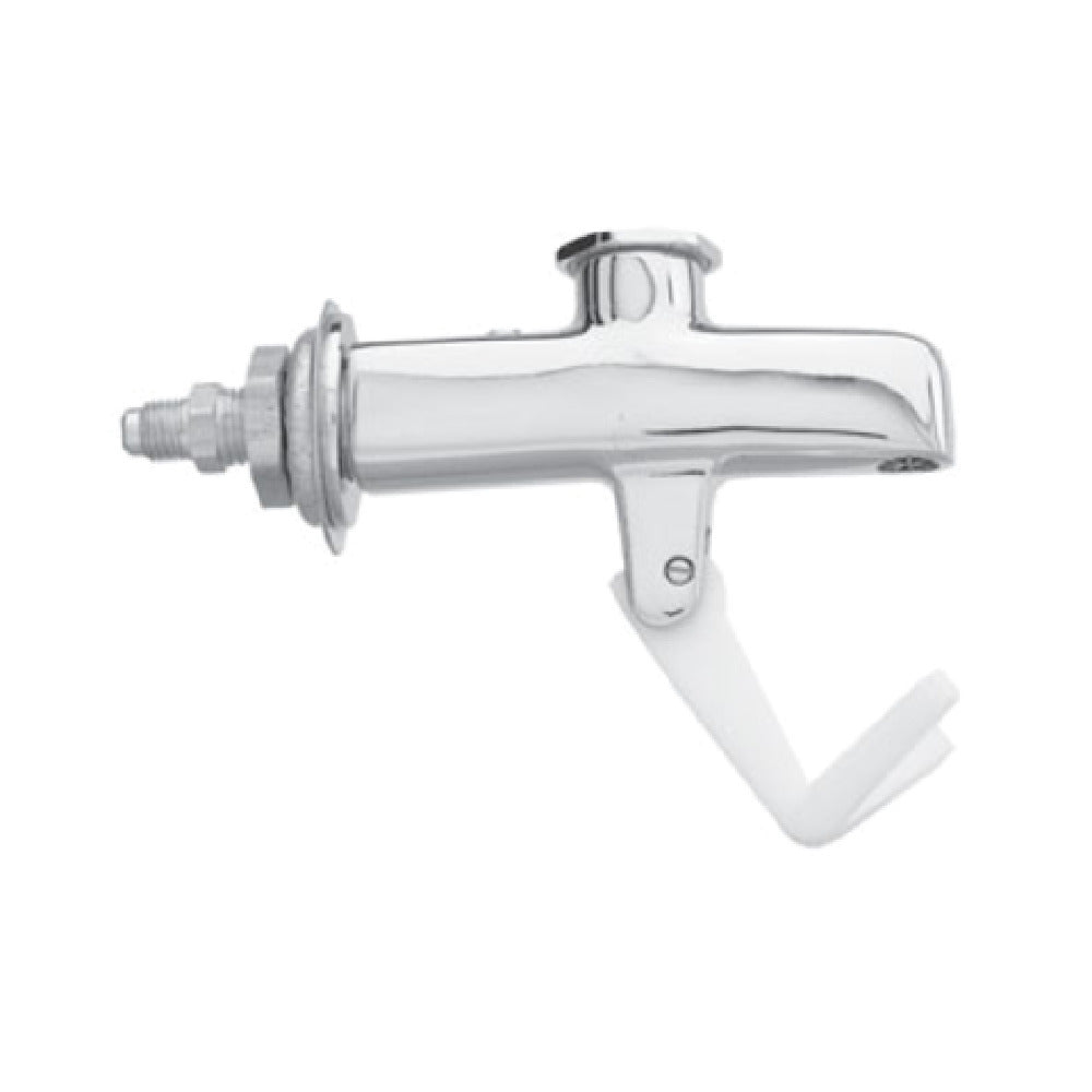 The Fisher 9033 Glass Filler Faucet is a wall-mounted, push-back glass filler designed to meet the demanding needs of commercial establishments. Featuring a 1/2" M with a 1/4" flare fitting and flange, this faucet ensures a secure and efficient connection for consistent water delivery. The inclusion of a stainless steel stream straightener enhances water flow integrity, minimizing splash and ensuring a smooth stream — a crucial feature for high-traffic environments such as restaurants, cafeterias, and bars. This product is CSA-Sanitation ANSI/NSF 61, section 9 certified, affirming its compliance with rigorous health and safety standards, making it a reliable choice for businesses focused on maintaining stringent sanitation protocols. Engineered for durability and ease of use, the Fisher 9033 offers a practical solution for establishments requiring a dependable glass filler faucet. Its robust construction and straightforward design ensure that it can withstand frequent use while maintaining optimal performance, making it particularly valuable to food service professionals seeking both efficiency and compliance in their water delivery systems.