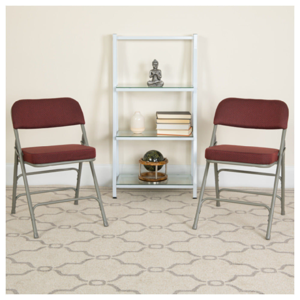 Flash Furniture 2-AW-MC320AF-BG-GG Hercules Series Folding Chair Burgundy Patterned Fabric Back & Seat - 1/Set