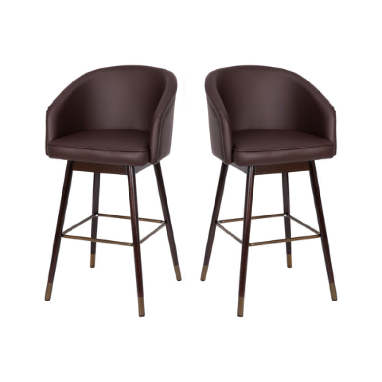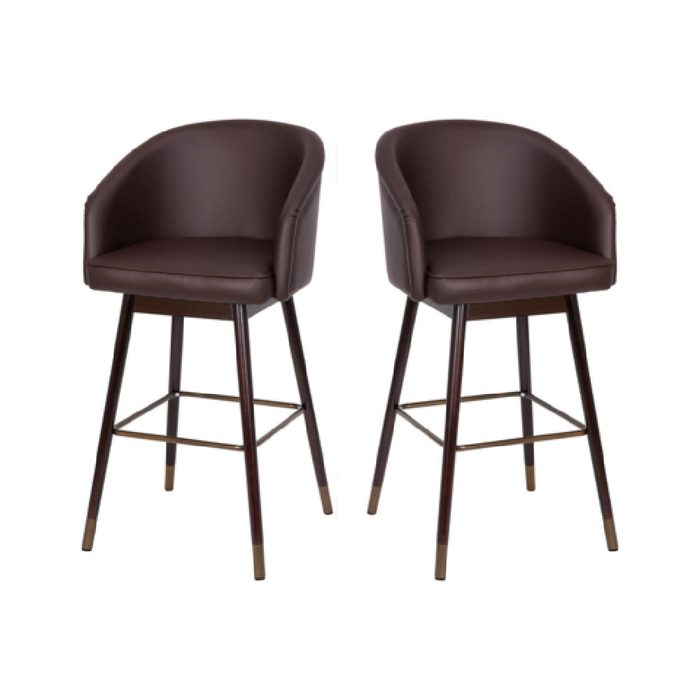 The Flash Furniture 2-AY-1928-30-BR-GG Margo Bar Stool Mid-back 30" Seat Height is an elegant seating solution designed to enhance both aesthetics and comfort across various environments. Featuring a mid-back design, this bar stool offers ergonomic support with its contoured brown leather back and seat, ensuring a comfortable sitting experience. The stool stands at a substantial 30" seat height, making it suitable for high-top tables and bar counters, catering to both residential and commercial settings. The walnut finish beechwood legs add a sophisticated touch, complemented by bronze accents for a refined appearance. Sold as a set of two, these bar stools are crafted for durability and style, making them ideal for use in restaurants, bars, and modern home kitchens. In-stock items are typically ready for shipping within 24 hours, providing a quick and efficient purchasing experience. With its blend of quality materials and elegant design, the Flash Furniture Margo Bar Stool is a versatile seating option that seamlessly integrates into various decor styles, offering both functionality and aesthetic appeal to meet the needs of diverse market segments within the furniture industry.